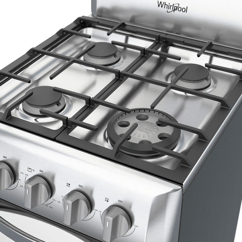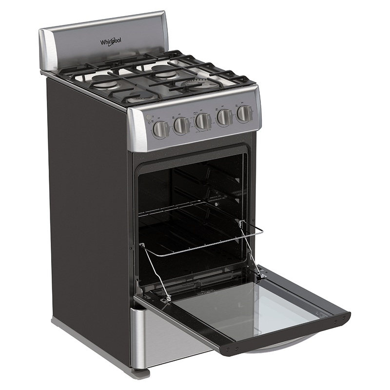 La estufa con horno Whirlpool (WWR5000S) es una opción funcional para cocinar con precisión. Cuenta con respaldo y cubierta de acero inoxidable, panel Top Control y encendido electrónico de botón. Dispone de cuatro quemadores: tres estándar y uno Xpert Flamma, diseñado para distribuir el calor de manera uniforme. Su horno incluye una parrilla deslizable y tecnología EverClean para facilitar la limpieza.