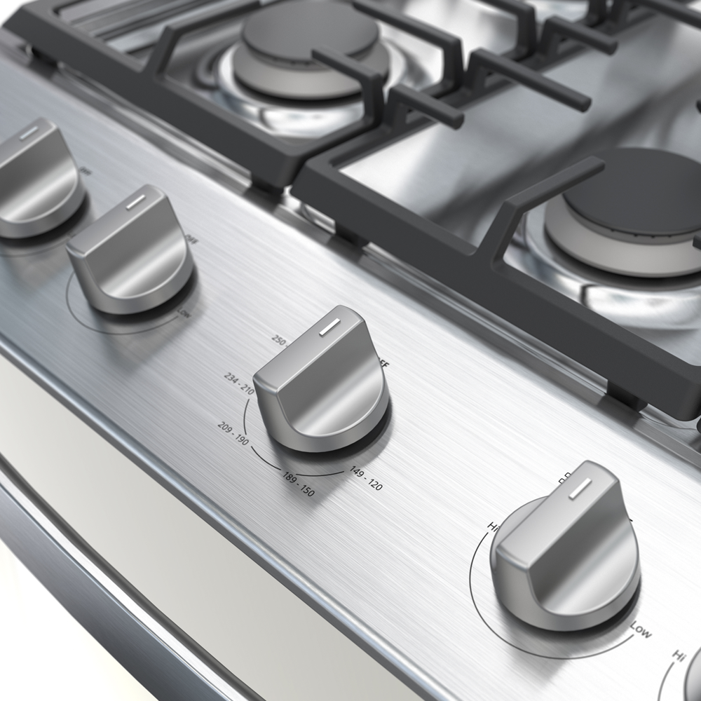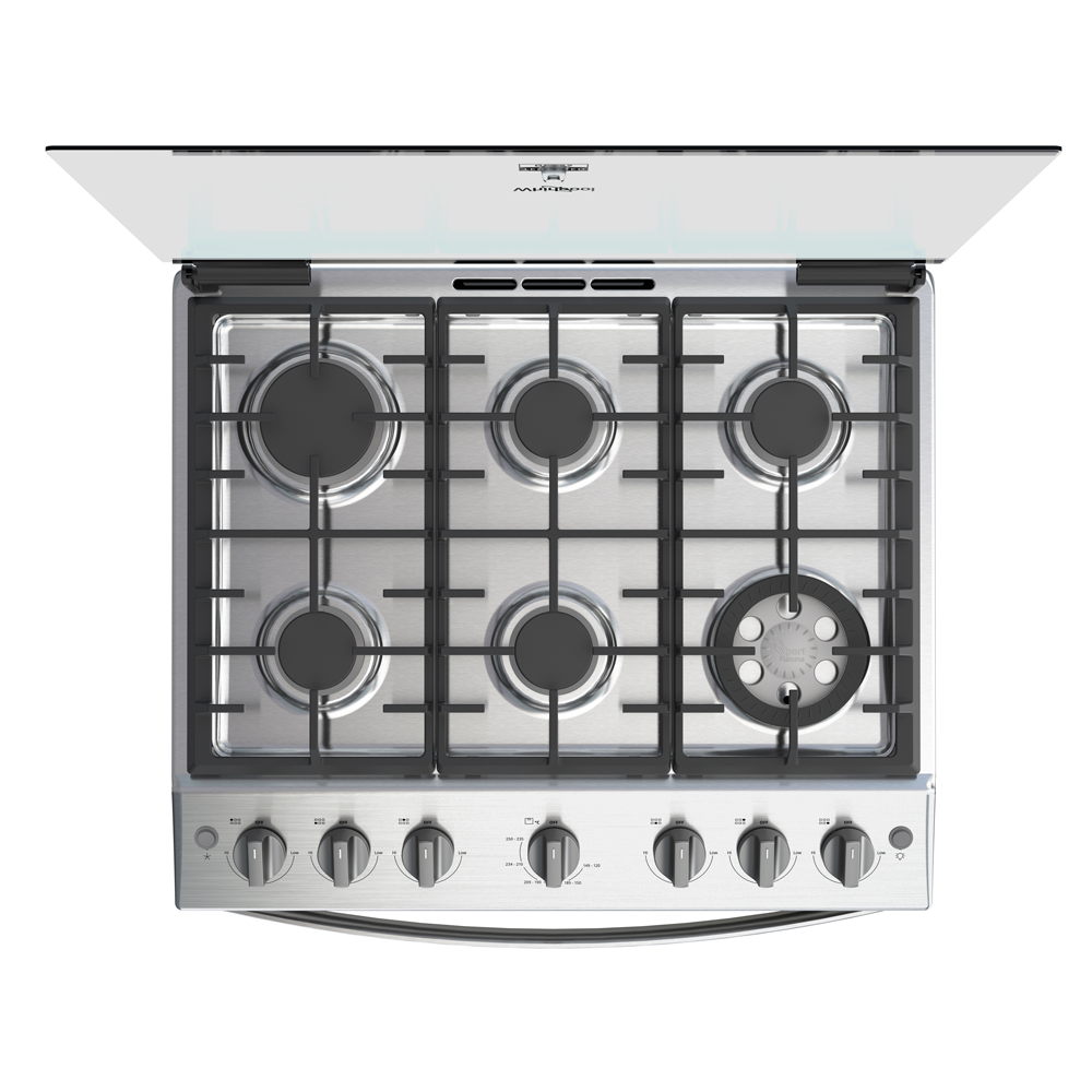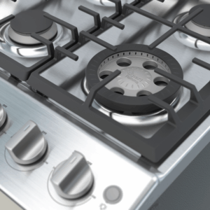 • 6 quemadores de aluminio con tapa mate: 1 Xpert Flamma Súper: 5,900 BTU + 1 Súper:7,500 BTU + 4 Estándar: 7,100 BTU.